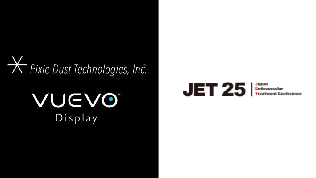 ピクシーダストテクノロジーズ株式会社(本社:東京都中央区、代表取締役会長CEO:落合陽一、代表取締役社長COO:村上泰一郎、以下「PxDT」)は、2025年4月25日(金)から27日(日)にグランフロント大阪(大阪市北区)にて開催される一般社団法人Japan Endovascular Treatment Conference(JET)が主催する「Japan Endovascular Treatment Conference 2025(JET2025)」において、リアルタイム翻訳ディスプレイ「VUEVO Display(ビューボディスプレイ)」を、受付カウンターに初導入いたします。