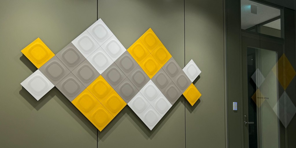 iwasemi™吸音パネルは、会話音の周波数帯域に特化した吸音性能と高い意匠性を兼ね備え、会議に最適な音響空間を実現。反響音を抑え、聞き取りやすい音響で快適さと効率性を高めます。