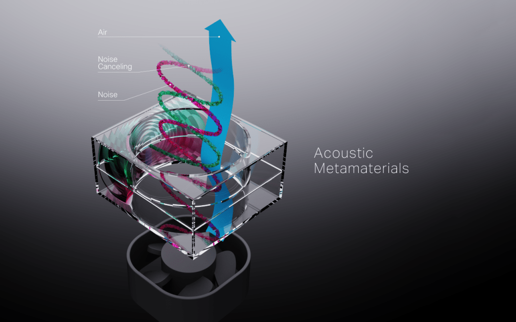 本実験では、空気は通すが音は通さない音響メタマテリアル技術の活用により、ファンの通気性能を担保したままより快適な音環境を実現すべく純音成分(1160Hz)の低減が可能かを実証しました。